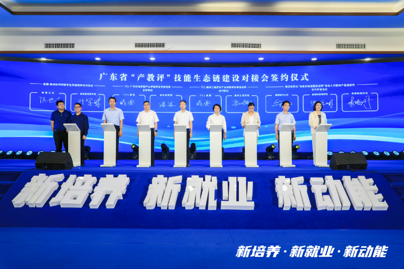 对接会上,63条“产教评”技能生态链连“企”成面,一批新职业、新岗位职业技能标准开发计划出炉,10.31万个学徒岗位发布……而惠州工程职业学院此次和惠州当地龙头企业TCL科技集团股份有限公司齐心携手,共建共享人才培养体系,围绕惠州“2+1”产业集群,采用“岗位+培养”新模式,将有利于以点成链、以链带面,辐射整个上下游产业链,形成一体化、系统性的人才培养优势,弥补单靠政府、院校培养的不足。