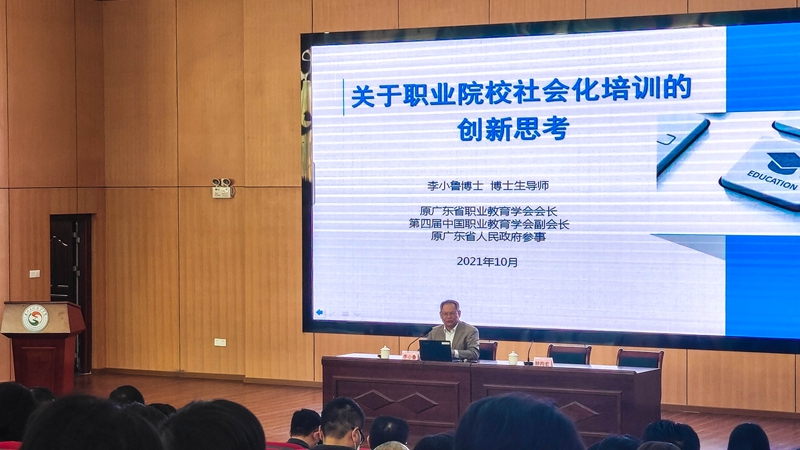 为提升学校服务学习型社会建设能力,提高教职员工继续教育和培训水平,11月11日,广东省教育厅原副厅长李小鲁博士应邀到惠州工程职业学院开展职业教育与培训体系建设专题培训。学院领导班子成员,全体教职工参加培训。