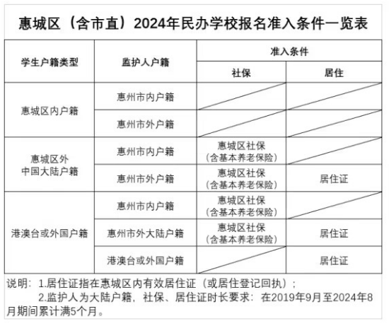 1.监护人一方为港澳台户籍或外国户籍,持有效的惠城区居住证。