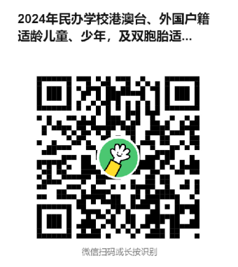 2.适龄儿童、少年为港澳台、国外户籍及双胞胎(多胞胎)的申请人,应扫描下方二维码进行预约,按照预约时间前往区教育局服务大厅进行线下受理。
