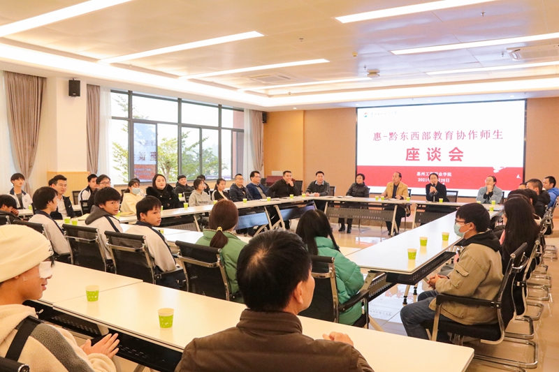 为进一步加强与“惠-黔”师生的沟通交流,提升学校教学和服务水平,12月28日下午,惠州工程职业学院在职业培训中心举行“惠-黔东西部教育协作”师生座谈会。学校党委书记钟均宏、副院长郑爱萍、张彦红及学生处、教务处、机电工程系、财经商贸系、信息工程系、生态工程系相关负责人和“惠-黔东西部教育协作”的全体师生参加座谈交流。座谈会由张彦红主持。