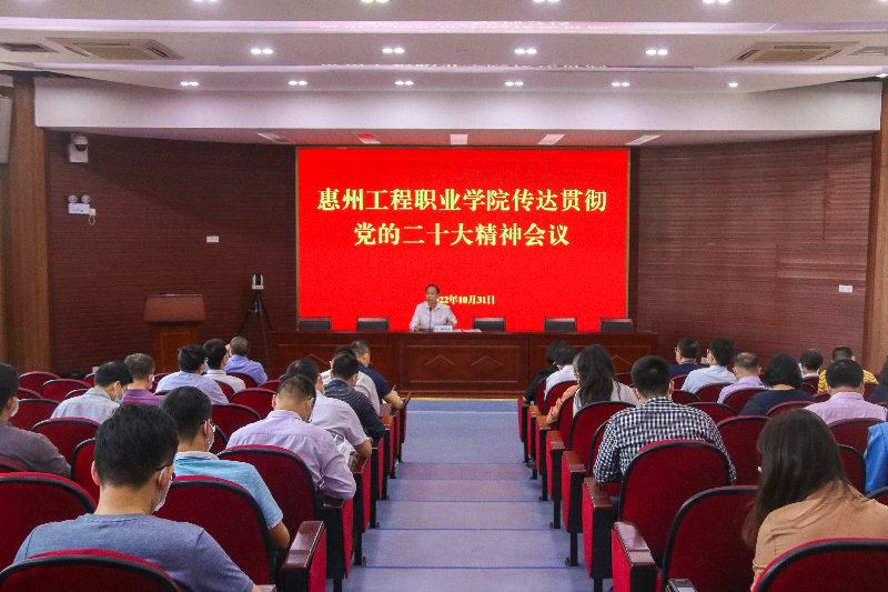 10月31日上午,在组织收听收看全省教育系统学习贯彻党的二十大精神动员部署会后,惠州工程职业学院召开传达贯彻党的二十大精神会议,认真学习贯彻中国共产党第二十次全国代表大会精神,传达全省、全市传达贯彻党的二十大精神大会精神,研究部署学校学习宣传贯彻工作。学校领导班子成员、中层正职干部参加会议。会议由党委书记钟均宏主持。
